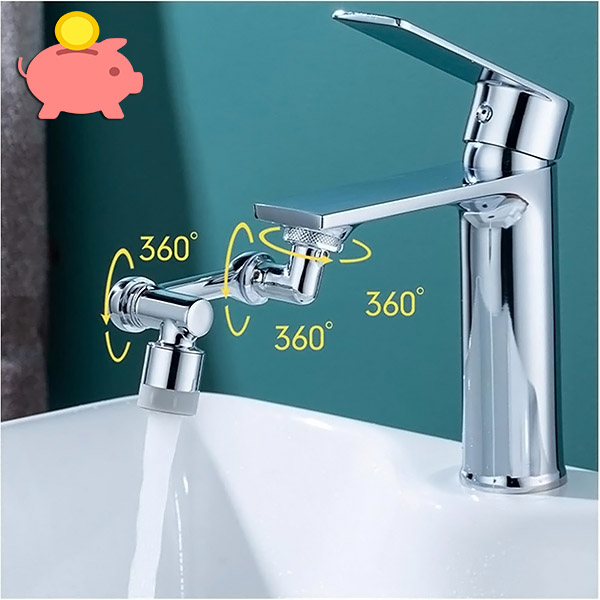 Bereik eenvoudig elke hoek van de gootsteen met een volledige rotatie van 1080°, perfect om je gezicht te wassen, de afwas te doen of de gootsteen schoon te maken.