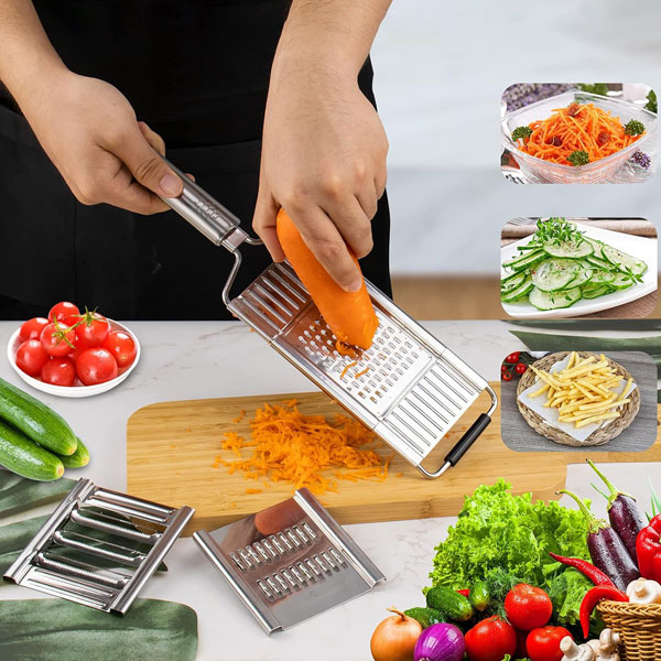 🧑‍🍳 Multifunctioneel ontwerp: Snijden, raspen en hakken met één tool—perfect voor salades, frietjes en snelle maaltijden.