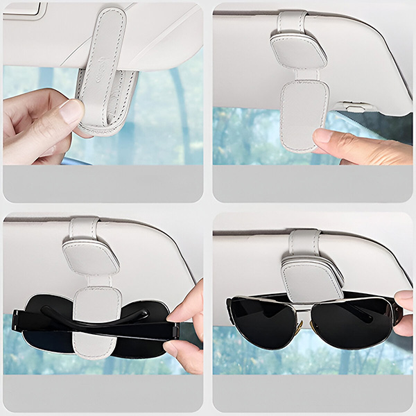 Klem gewoon de autozonnebrilclip op de zonneklep om je zonnebril goed te ordenen, u hoeft zich geen zorgen meer te maken dat de zonnebril kwijtraakt of rommelt.
