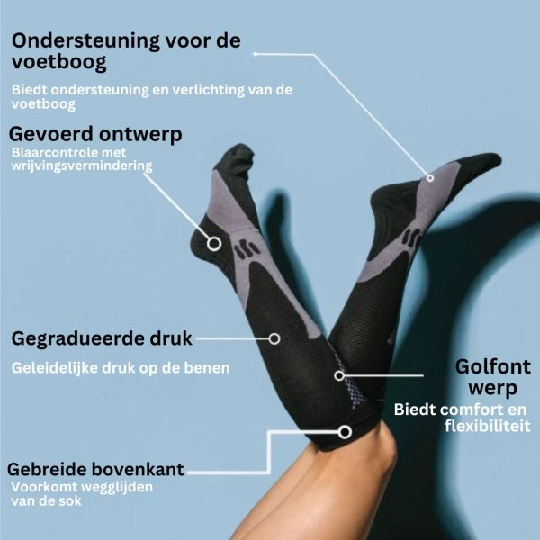 Deze sokken helpen de bloedstroom te verbeteren, wat betekent dat je minder moe bent en meer energie hebt voor de dag. Perfect voor lange uren op je voeten of intensieve fysieke activiteit.
