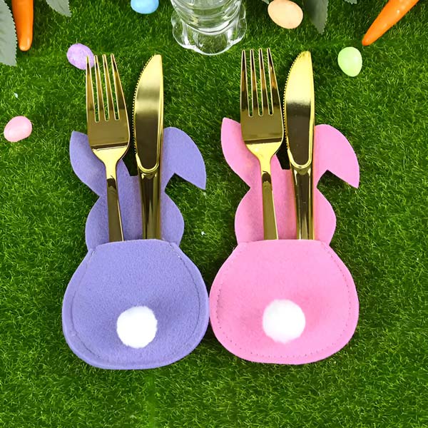 Maak Paasmaaltijden speciaal met charmante konijnen bestekhouders, die warmte en vreugde aan uw tafel brengen.