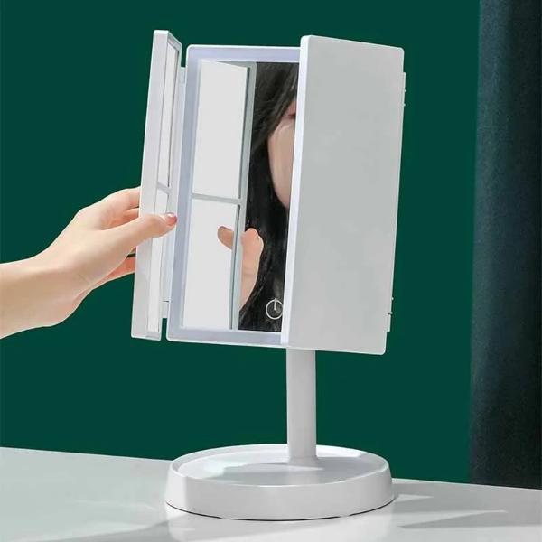 De meeste make-upspiegels vereisen installatie of een stopcontact in de buurt. STARMIRROR ontvouwt zich en staat in minder dan 60 seconden op elk plat oppervlak – geen montage, geen bedrading, geen gereedschap vereist. Sluit de meegeleverde USB-kabel aan of plaats 4 AAA-batterijen en je spiegel is overal klaar voor gebruik.