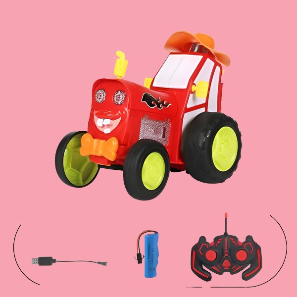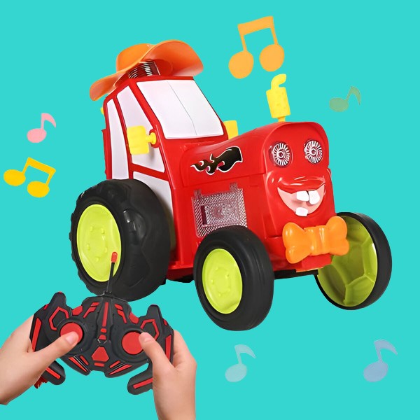 De JUMPICAR is niet zomaar een gewone tractor. Hij kan vooruit en achteruit springen, salto’s maken en zelfs rechtop staan tijdens het springen. Deze leuke acties geven het gevoel dat de tractor leeft en vol energie zit, waardoor je kind betrokken blijft terwijl ze hem trucjes zien doen.