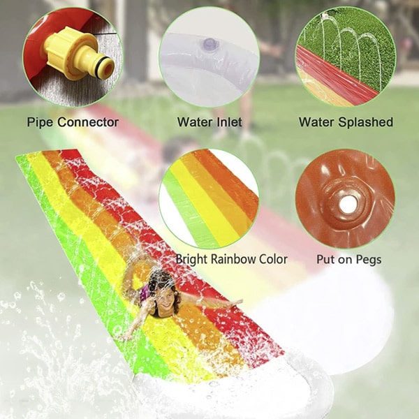 Het oppervlak is glad en glibberig en zorgt voor een snelle en leuke glijbaan, terwijl het geïntegreerde sproeisysteem de glijbaan nat en glibberig houdt voor een spannende rit.