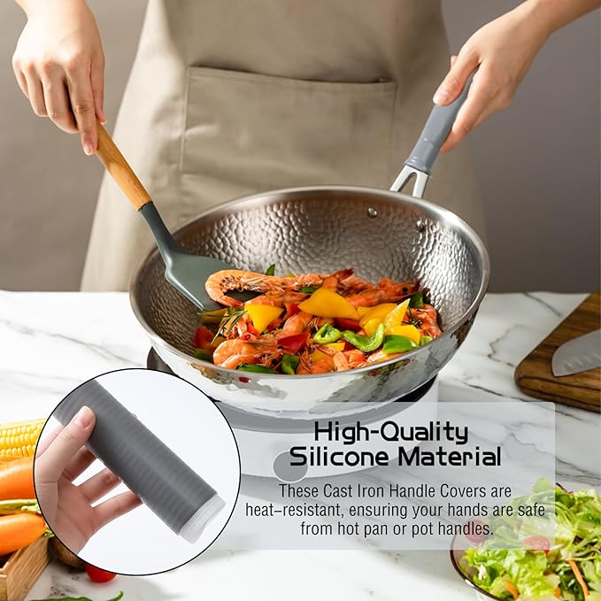 Bescherm je handen tegen brandwonden en ongelukjes met onze koel aanvoelende siliconen handvathoezen, die de hitte van de handgrepen effectief isoleren, zodat je comfortabel en vol vertrouwen kunt koken.