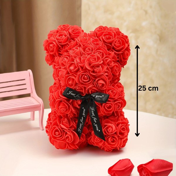 Deze teddybeer is een speciaal, handgemaakt cadeau dat de zachte elegantie van rozen combineert met de charme van een teddybeer. Wanneer u deze unieke creatie presenteert, zal het zeker indruk maken, wat zorgt voor een onvergetelijke verrassing.