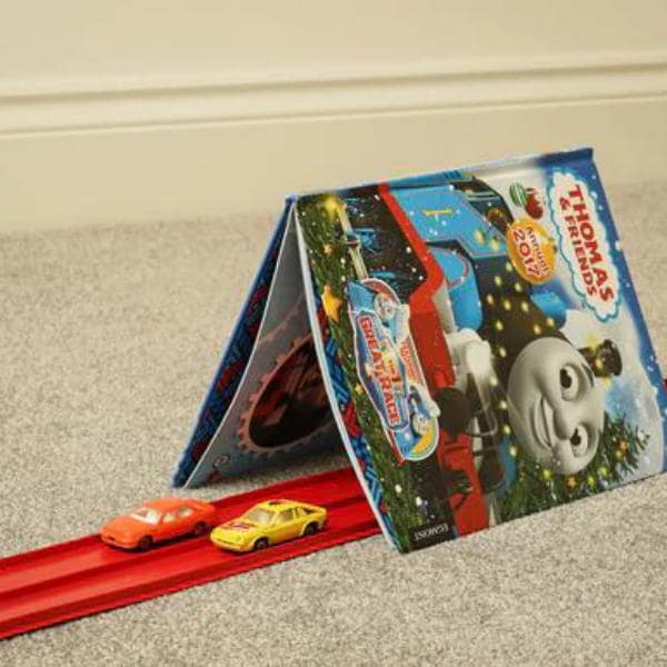 Gebruik je bestaande speelgoedauto’s, bevestig hem eenvoudig aan een raam of deur, rol hem uit en begin te racen – alleen aangedreven door de zwaartekracht, zonder batterijen of dure toevoegingen.